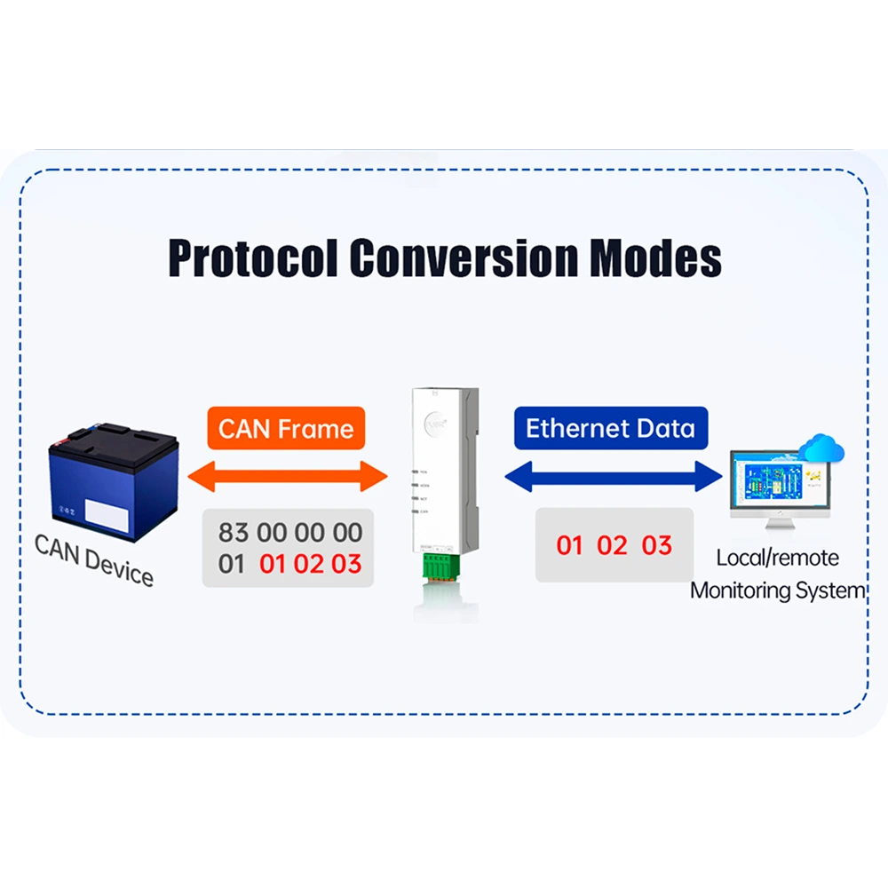 Este dispositivo robusto atua como uma ponte confiável, permitindo que equipamentos CAN e dispositivos de rede IP (como PCs, CLPs e servidores) troquem informações de maneira transparente e estável, garantindo a interoperabilidade entre diferentes sistemas.