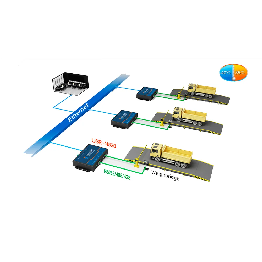 O Servidor de Dispositivos Serial para Ethernet USR-N520 é uma solução robusta e versátil para conectar múltiplos equipamentos seriais à sua rede Ethernet. Ele permite a **transmissão transparente** de dados entre pacotes TCP/UDP e interfaces RS232, RS485 e RS422. Com **2 portas seriais** que podem operar simultaneamente em diferentes modos, o USR-N520 é ideal para aplicações industriais complexas, automação e sistemas IoT que exigem alta confiabilidade e flexibilidade.