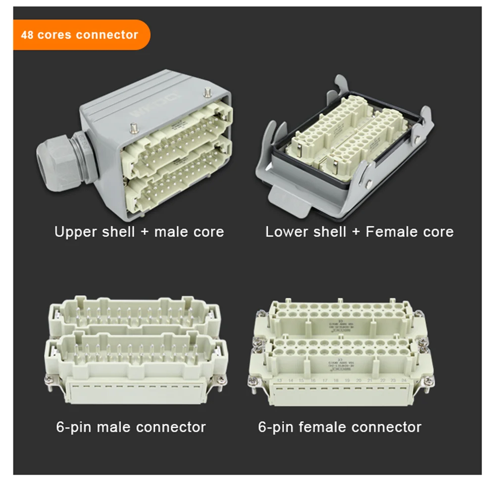 Tomada Multipolar WKDQ 48 Pinos + Terra (Macho + Fêmea) – Saída Superior (Reta)
