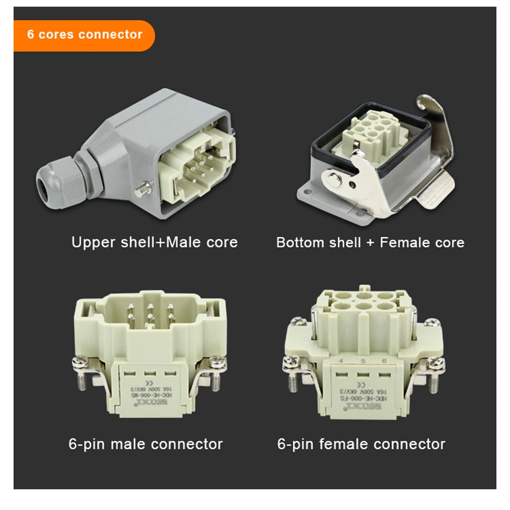 Tomada Multipolar WKDQ 6 Pinos + Terra (Macho + Fêmea) – Saída Superior (Reta)