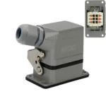 A **Tomada Industrial Multipolar WHE06CP** é um conjunto completo (Plug Macho e Receptáculo Fêmea) projetado para conexões robustas e de alta confiabilidade em ambientes industriais. Com a moderna tecnologia **Push-in (sem parafuso)**, ela garante instalações rápidas, seguras e com excelente contato elétrico. O design com saída a **90 graus** otimiza o uso em espaços limitados e reduz o estresse mecânico nos cabos.