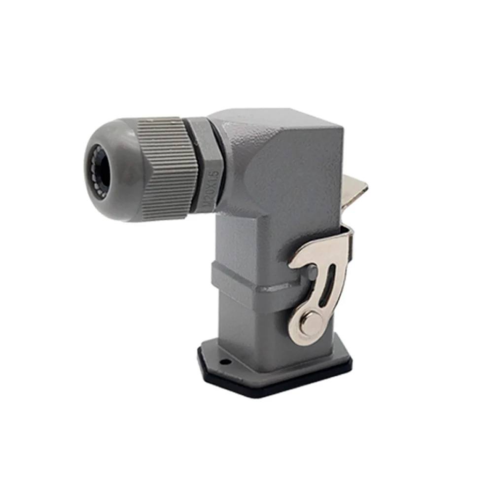 Este é um conjunto de tomada multipolar (Macho + Fêmea) com **24 Pinos + Terra (25 contatos)**, corrente de 16A e tensão de 230V. Apresenta sistema de conexão **Push-in** (sem parafuso) e **saída lateral (90 graus)**. Possui material isolante PA com classificação V0, é extremamente robusta (-40°C a +125°C) e ideal para sistemas industriais que exigem a máxima densidade de contatos.